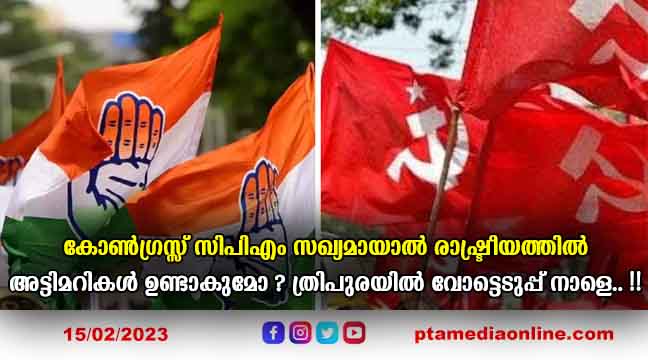 ത്രിപുരയിലെ ത്രികോണ ത്രില്ലർ പോരാട്ടത്തിന് വ്യാഴാഴ്ച വോട്ടെടുപ്പോടെ ആന്റി ക്ലൈമാക്സ്. നഷ്ടപ്പെടാൻ ഏറെയുള്ള ഭരണകക്ഷി ബി.ജെ.പിയും ചിരവൈരം മാറ്റിവെച്ച് കോൺഗ്രസുമായി കൂട്ടുചേർന്ന് ബി.ജെ.പിയെ വീഴ്ത്താൻ ശ്രമിക്കുന്ന സി.പി.എമ്മും ഗോത്രമേഖല തൂത്തുവാരുമെന്ന് ഏവരും പ്രവചിക്കുന്ന ടിപ്ര മോതയും ചേർന്നുള്ള ത്രികോണ മത്സരത്തിന്റെ ആവേശത്തിലാണ് വടക്കുകിഴക്കൻ സംസ്ഥാനം.
