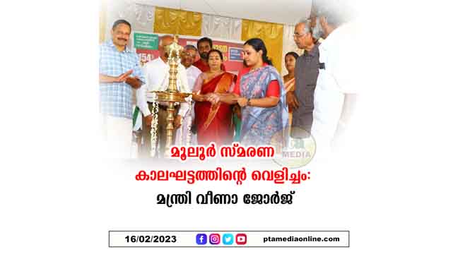 ഇലവുംതിട്ട – മൂലൂരിന്റെ ദീപ്തമായ സ്മരണ ഈ കാലഘട്ടത്തെ നയിക്കുന്ന വെളിച്ചമാണെന്ന് ആരോഗ്യമന്ത്രി വീണാ ജോർജ് പറഞ്ഞു. സരസകവി മൂലൂർ എസ് പത്മനാഭപണിക്കരുടെ 154 -മത് ജയന്തി ആഘോഷവും ഇലവുംതിട്ട മൂലൂർ സ്മാരകത്തിന്റെ 34 -മത് വാർഷികവും ഉദ്ഘാടനം ചെയ്തു സംസാരിക്കുകയായിരുന്നു മന്ത്രി. നമ്മൾ ആയിരിക്കുന്ന ഇടങ്ങളിൽ ചെയ്യുന്ന പ്രവർത്തികൾ സാമൂഹിക പ്രതിബദ്ധതയോടെ വരും തലമുറകൾക്ക് വേണ്ടി ചെയ്യണമെന്നുള്ള ഓർമ്മപ്പെടുത്തലാണ് മൂലരിന്റെ സ്മരണ നൽകുന്നത്. മൂലൂരിനെയും ശ്രീനാരായണ ഗുരുവിനെയും പോലുള്ളവർ നമ്മുടെ പൂർവികരുടെ മനസിൽ വരുത്തിയ മാറ്റങ്ങളിലൂടെയാണ് സമൂഹത്തിൽ മാറ്റം ഉണ്ടായതെന്നും മന്ത്രി പറഞ്ഞു.