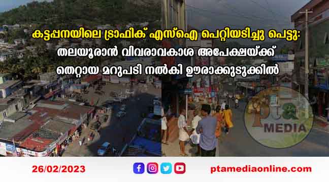 കട്ടപ്പന: പാർക്കിങിന്റെ പേരിൽ ട്രാഫിക്ക് പൊലീസ് സബ് ഇൻസ്പെക്ടറുടെ പീഡനം. എവിടെ പാർക്ക് ചെയ്താലും എസ്ഐ പെറ്റിയടിക്കും. എവിടെയൊക്കെയാണ് പാർക്കിങ്, നോ പാർക്കിങ് എന്നറിയാതെയുള്ള പെറ്റിയടി കൊണ്ട് പൊറുതി മുട്ടിയ നാട്ടുകാരിൽ ചിലർ വിവരാവകാശം കൊടുത്തു. അതിന് എസ്ഐ നൽകിയ മറുപടി തെറ്റായതും തെറ്റിദ്ധരിപ്പിക്കുന്നതുമായിരുന്നു. അപ്പീൽ അധികാരിക്ക് പരാതി നൽകിയപ്പോൾ തനിക്ക് തെറ്റുപറ്റിയെന്ന് എസ്ഐയുടെ കുറ്റസമ്മതം.കട്ടപ്പന ട്രാഫിക് പോലീസ് യൂണിറ്റിലെ എസ്ഐ എസ്. സുലൈഖയാണ് പുലിവാൽ പിടിച്ചിരിക്കുന്നത്.