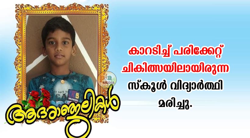 കാറടിച്ച് പരിക്കേറ്റ് ചികിത്സയിലായിരുന്ന സ്കൂൾ വിദ്യാർത്ഥി മരിച്ചു.