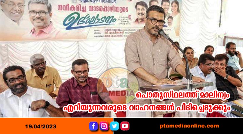 ആലപ്പുഴ നഗരത്തിലെ വെള്ളക്കെട്ടിന് ശാശ്വത പരിഹാരമായി നിർമ്മാണം പൂർത്തീകരിച്ച വാടപ്പൊഴിയുടേയും അനുബന്ധ തോടുകളുടെയും കനാലുകളുടെയും നവീകരണ പദ്ധതി തദ്ദേശ സ്വയംഭരണ എക്സൈസ് വകുപ്പ് മന്ത്രി എം.ബി രാജേഷ് ഉദ്ഘാടനം ചെയ്തു. പൊതുസ്ഥലത്ത് മാലിന്യം എറിയുന്നവരുടെ വാഹനങ്ങൾ പിടിച്ചെടുക്കുന്നത് ഉൾപ്പെടെ കർശന നടപടികളിലേക്ക് നീങ്ങുമെന്ന് മന്ത്രി എം.ബി രാജേഷ് അറിയിച്ചു. ഇതു സംബന്ധിച്ച് പൊലീസിന് കർശനനിർദേശം നൽകിയിട്ടുണ്ടെന്നും അദ്ദേഹം പറഞ്ഞു. സംസ്ഥാന സർക്കാരിൻറെ 100 ദിന കർമ്മ പരിപാടിയിൽ ഉൾപ്പെടുത്തി ആലപ്പുഴ നഗരസഭ അമൃത് പദ്ധതിയിലൂടെയാണ് നിർമാണം പൂർത്തിയാക്കിയത്.ഹരിതകർമ്മ സേനയ്ക്ക് യൂസർ ഫീ നൽകാത്തവരുടെ കെട്ടിട നികുതിയിൽ ഇത് കുടിശികയായി ഈടാക്കുമെന്നും മന്ത്രി വ്യക്തമാക്കി. മാലിന്യം ശരിയായി വേർതിരിച്ച് സംഭരിച്ച് അതത് സംവിധാനത്തിലൂടെ സംസ്കരിക്കേണ്ടത് വ്യക്തികളുടെ ഉത്തരവാദിത്വമാണ്. കേരളത്തിൽ അമൃത് പദ്ധതിയുടെ തുക വിനിയോഗത്തിൽ രണ്ടാം സ്ഥാനമാണ് ആലപ്പുഴ നഗരസഭയ്ക്ക്. മാലിന്യ സംസ്കരണത്തിൽ ആലപ്പുഴ മാതൃകയാണെന്നും മന്ത്രി പറഞ്ഞു.രാജ്യത്തെ 500 അമൃത് നഗരങ്ങളിൽ ഒന്നായ ആലപ്പുഴ നഗരസഭയിൽ ദ്രവമാലിന്യ സംസ്കരണം, പാർക്ക്, സ്റ്റോം വാട്ടർ ഡ്രെയ്നേജ്, അർബൻ ട്രാൻസ്പോർട്ട് എന്നീ സെക്ടറുകളിലായി 201 പദ്ധതികളാണ് വിഭാവനം ചെയ്തിട്ടുള്ളത്. ഇതിൽ 179 പദ്ധതികൾ പൂർത്തിയാക്കി. മറ്റുള്ളവ പൂർത്തീകരണത്തിന്റെ വിവിധ ഘട്ടങ്ങളിലാണ്. 190.27 കോടി രൂപയാണ് ഇതിനായി ചിലവഴിച്ചത്.സ്റ്റോം വാട്ടർ ഡ്രെയ്നേജ് സെക്ടറിൽ 141 പദ്ധതികളിലായി 40.92 കോടി രൂപ ചിലവഴിച്ച് ഏകദേശം 48 കിലോമീറ്റർ സംരക്ഷണ ഭിത്തി നിർമ്മിക്കുകയും തോടുകൾ വൃത്തിയാക്കി ആഴം കൂട്ടി നീരൊഴുക്ക് സുഗമമാക്കുകയും ചെയ്തു. ആലപ്പുഴ നഗരസഭ അമൃത് പദ്ധതിയിൽ തെക്കൻ വാർഡുകളായ ഗുരുമന്ദിരം, ബീച്ച്, വാടയ്ക്കൽ, ഇരവുകാട്, കുതിരപ്പന്തി എന്നീ വാർഡുകളിലെ വെള്ളക്കെട്ടിന് ശാശ്വത പരിഹാരമാവും വിധമാണ് വാടപ്പൊഴിയുടെ നവീകരണം പദ്ധതി. വാടപ്പൊഴിയുടെയും അഞ്ച് അനുബന്ധ തോടുകളുടെയും ആഴം കൂട്ടി സംരക്ഷണ ഭിത്തി നിർമ്മിക്കുന്ന പദ്ധതി 2.2 കോടി അടങ്കലിലാണ് പൂർത്തീകരിച്ചത്.