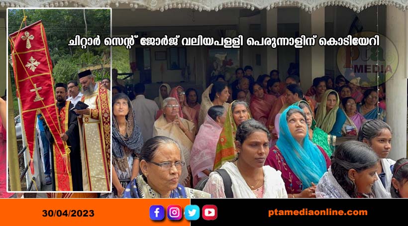 ചിറ്റാർ: സെന്റ് ജോർജ് ഓർത്തഡോക്സ് വലിയപള്ളി പെരുന്നാളിന് കൊടിയേറി. ഒമ്പതിന് സമാപിക്കും. വിശുദ്ധ കുർബാനയ്ക്കുശേഷം തുമ്പമൺ ഭദ്രാസന മുൻ സെക്രട്ടറി ഫാദർ ടൈറ്റസ് ജോർജ് പെരുന്നാൾ കൊടിയേറ്റ് നിർവഹിച്ചു. പെരുന്നാളിന് മുന്നോടിയായുള്ള വിളംബര റാലി കൂത്താട്ടുകുളം സെന്റ് സ്റ്റീഫൻസ് ചാപ്പലിൽ നിന്ന് ആരംഭിച്ച് വൈകിട്ട് സെന്റ് ജോർജ് വലിയ പള്ളിയിൽ സമാപിച്ചു. ബാലചന സംഗമം യുവജന സംഗമം വനിതാ സംഗമം ചെമ്പടപ്പ് റാസ പെരുന്നാൾ റാസ വെച്ചൂട്ട് എന്നിവ വിവിധ ദിവസങ്ങളിൽ നടക്കും.