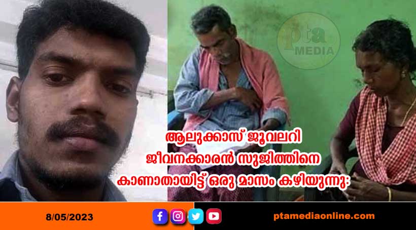 ആലുക്കാസ് ജൂവലറി ജീവനക്കാരൻ സുജിത്തിനെ കാണാതായിട്ട് ഒരു മാസം കഴിയുന്നു: തണ്ണിത്തോട് സ്‌റ്റേഷനിൽ നൽകിയ പരാതിയിൽ അധികാര പരിധി പറഞ്ഞ് കേസെടുക്കാതെ പൊലീസ് ?