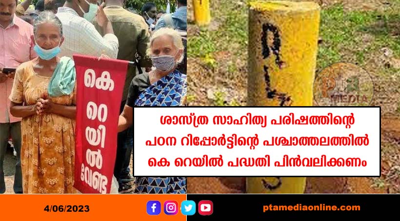 തിരുവനന്തപുരം: ശാസ്ത്ര സാഹിത്യ പരിഷത്തിന്റെ പഠന റിപ്പോർട്ടിന്റെ വെളിച്ചത്തിൽ കെ റെയിൽ പദ്ധതി പിൻവലിക്കണെന്ന് കെ റയിൽ സിൽവർ ലൈൻ വിരുദ്ധ ജനകീയ സമിതി. ഹരിത പദ്ധതി എന്ന സർക്കാരിന്റെ കള്ള പ്രചാരണങ്ങളെ സമിതി ആദ്യ ഘട്ടത്തിൽ തന്നെ തുറന്നു കാട്ടിയിരുന്നു. ഇതിനെ സാധൂകരിക്കുന്ന റിപ്പോർട്ടാണ് കേരള ശാസ്ത്ര സാഹിത്യ പരിഷത്ത് പുറത്തിറക്കിയ പഠന റിപ്പോർട്ട്.