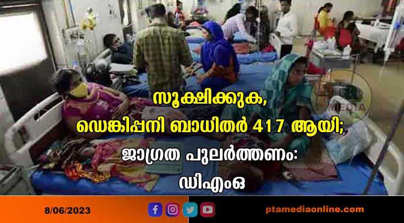 പത്തനംതിട്ട – ജില്ലയിൽ ഈ വർഷം ജനുവരി ഒന്നു മുതൽ ജൂൺ എട്ടു വരെ 417 ഡെങ്കിപ്പനി ബാധ റിപ്പോർട്ട് ചെയ്തതായി ജില്ലാ മെഡിക്കൽ ഓഫീസർ(ആരോഗ്യം) ഡോ. എൽ. അനിതാകുമാരി അറിയിച്ചു. ഇത് അപകടകരമായ സ്ഥിതിയാണ്. ജില്ലയിലെ സീതത്തോട് (51 രോഗികൾ), അരുവാപ്പുലം (44 രോഗികൾ), തണ്ണിത്തോട് (45 രോഗികൾ), ആനിക്കാട് (24 രോഗികൾ) എന്നീ പഞ്ചായത്തുകളിലാണ് രോഗബാധ കൂടുതലായുളളത്. കൊതുകിന്റെ കൂത്താടികളെ ഇല്ലാതാക്കുക എന്നതിലൂടെ മാത്രമേ ഡെങ്കിപ്പനിയെ നിയന്ത്രിക്കാനാകു.
