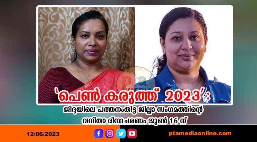 ജിദ്ദ: പത്തനംതിട്ട ജില്ലാ സംഗമം (പിജെഎസ്സ്) പുതിയ വനിതാ ഭാരവാഹികളായി നിഷ ഷിബുവിനെ കൺവീനറും, സൗമ്യ അനൂപിനെ ജോയിന്റ് കൺവീനറുമായി തിരഞ്ഞെടുത്തു. പിജെഎസ് വനിതാ ദിനം `പെൺ കരുത്ത്-2023’ എന്ന പേരിൽ ജൂൺ 16-അം തീയതി വൈകിട്ട് ഏഴ് മണി മുതൽ നടത്തുവാൻ തീരുമാനിച്ചതായി അറിയിച്ചു. ഇന്ത്യൻ ഇന്റർനാഷണൽ സ്കൂൾ മാനേജിങ് കമ്മറ്റി അംഗവും, ജിദ്ദ കിംഗ് അബ്ദുൾ അസീസ് യൂണിവേഴ്സിറ്റി ഇലക്ട്രിക്കൽ ആൻഡ് കമ്പ്യൂട്ടർ എഞ്ചിനീയറിംഗ് വിഭാഗത്തിൽ ജോലി ചെയ്യുന്ന ഡോ: ഹേമലത മഹാലിംഗം മുഖ്യ അതിഥി ആയിരിക്കും. വനിതാ വിഭാഗം അവതരിപ്പിക്കുന്ന വിവിധ പരിപാടികളും ഉണ്ടായിരിക്കുന്നതാണ്.