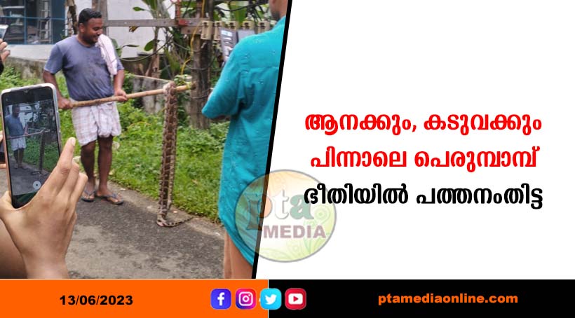 പത്തനംതിട്ട : ആനക്കും, കടുവക്കും പിന്നാലെ പത്തനംതിട്ടയുടെ ഉറക്കംക്കെടുത്തി പെരുമ്പാമ്പുകളും. മാടുമേച്ചിൽ ട്രാൻസ്ഫോർമറിൽ പെരുമ്പാമ്പ് ചത്തിരുന്നതിനു പിന്നാലെ ഇന്നലെ നഗരമദ്ധ്യത്തിലെ മാർക്കറ്റിനുള്ളിലെ മാലിന്യസംഭരണകേന്ദ്രത്തിന്റെ മേൽക്കൂരയിൽ കുടുങ്ങിയ നിലയിൽ പെരുമ്പാമ്പിനെ കണ്ടെത്തി. പാമ്പു പിടുത്തക്കാരനായ കോന്നി ബിജു എത്തിയാണ് പിടികൂടി വനംവകുപ്പ് ഉദ്യോഗസ്ഥർക്ക് കൈമാറിയത്. കഴിഞ്ഞ അഞ്ചുദിവസത്തിനുളളിൽ നഗരത്തിലും നഗരത്തോട് ചേർന്നുകിടക്കുന്ന പ്രദേശങ്ങളിലുമായി നാലിടത്താണ് പെരുമ്പാമ്പിനെ കണ്ടത്. ഇതിൽ നഗരസഭയിലെ മൂന്നാംവാർഡിലെ തോട്ടിലും നഗരമദ്ധ്യത്തിലെ സ്വകാര്യ ബസ് സ്റ്റാൻഡിന് സമീപമുളള ചതുപ്പിലും കണ്ടെത്തിയ പെരുമ്പാമ്പിനെ പിടികൂടാൻ കഴിഞ്ഞിട്ടില്ല. തോന്ന്യാമല ഭാഗത്തെ തോട്ടിൽ നിന്ന് താറാവിനെ പിടികൂടിയ ശേഷം പാമ്പ് സമീപത്തെ പാടത്തേക്ക് ഇഴഞ്ഞുപോയി. കഴിഞ്ഞ ദിവസം നാരാങ്ങാനം ഗ്രാമപഞ്ചായത്തിലെ മാടുമേച്ചിലിൽ ട്രാൻസ് ഫോർമറിൽ കയറിയ പെരുമ്പാമ്പ് ഷോക്കേറ്റ് ചത്തു.മുൻപ് കിഴക്കൻ വനമേഖലയിൽ നിന്ന് മലവെളളപ്പാച്ചിലിനൊപ്പമോ ഉരുൾപൊട്ടലുണ്ടാകുമ്പോഴോ ആണ് പെരുമ്പാമ്പുകൾ നാട്ടിൽ ഒഴുകി എത്തിയിരുന്നത്. എന്നാൽ ഇപ്പോൾ പെരുമ്പാമ്പിനെ കണ്ടെത്തിയ ഭാഗങ്ങൾ നദികളുമായി ബന്ധമില്ലാത്ത ഇടങ്ങളാണ്. തരിശുകിടക്കുന്ന പാടശേഖരങ്ങളിലും കാടുപിടിച്ച പുരയിടങ്ങളിലും ചതിപ്പുനിലങ്ങളിലുമെല്ലാം ഇവയുണ്ടാകാൻ സാദ്ധ്യതയുണ്ട്. മഴയിൽ പാടശേഖരങ്ങളും തോടുകളും നിറഞ്ഞതോടെ ഇവ ഇരതേടി കരയിലേക്കും ജനവാസകേന്ദ്രങ്ങളിലേക്കും എത്തിയതെന്നാണ് കരുതുന്നത്.
