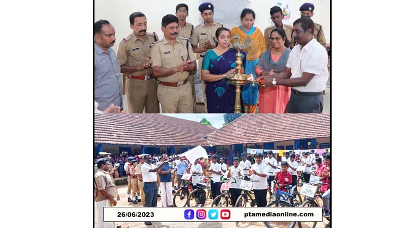 പത്തനംതിട്ട : ജില്ലാ പോലീസ് എസ് പി സി പ്രോജക്ടിന്റെ ആഭിമുഖ്യത്തിൽ ലഹരി വിമുക്ത ഇന്ത്യാ ക്യാമ്പയിന്റെ ഭാഗമായി സ്കൂളുകളിൽ ലഹരിക്കെതിരെ ബോധവൽക്കരണ റാലി , സൈക്കിൾ റാലി, ഫ്ലാഷ് മോബ്, തെരുവുനാടകങ്ങൾ സെമിനാറുകൾ, ഉപന്യാസ രചന, ചിത്ര രചന, കാർട്ടൂൺ രചന , പോസ്റ്റർ നിർമ്മാണം, തുടങ്ങിയവ സംഘടിപ്പിച്ചു. ജില്ലാതല ഉദ്ഘാടനം നാർക്കോട്ടിക് സെൽ ഡി വൈ എസ് പി യും എസ് പി സി പ്രോജക്ട് ജില്ല നോഡൽ ഓഫീസറുമായ കെ എ വിദ്യാധരൻ പുല്ലാട് ശ്രീവിവേകാനന്ദ ഹൈസ്കൂളിൽ രാവിലെ 10ന് നിർവഹിച്ചു. കോയിപ്രം പോലീസ് ഇൻസ്പെക്ടർ സജീഷ് കുമാർ പ്രതിജ്ഞ ചൊല്ലിക്കൊടുത്തു. സ്കൂളിലെ എസ് പി സി ജൂനിയർ ബാച്ച് പ്രവർത്തനോത്ഘാടനവും നടന്നു. തുടർന്ന് ലഹരിക്കെതിരെ കേഡറ്റുകളെ അണിനിരത്തി സൈക്കിൾറാലി സംഘടിപ്പിച്ചു. ജില്ലാ നോഡൽ ഓഫിസർ ഫ്ലാഗ് ഓഫ് ചെയ്തു . ചടങ്ങിൽ പി ടി എ പ്രസിഡന്റ് പി ജി അനിൽ കുമാർ അധ്യക്ഷനായിരുന്നു. ഹെഡ്മാസ്റ്റർ കെ ലാൽജി കുമാർ സ്വാഗതം പറഞ്ഞു. എസ് പി സി അസിസ്റ്റന്റ് നോഡൽ ഓഫീസർ എസ് ഐ സുരേഷ് കുമാർ, രഞ്ജിനി ആർ, ബിന്ദു കെ നായർ, സുരേഷ് കുമാർ എന്നിവർ സംസാരിച്ചു.തുടർന്ന് 11:00 മണിക്ക് കോഴഞ്ചേരി സെന്റ് തോമസ് എച്ച് എസ് എസ് യിൽ ലഹരി മുക്ത ഇന്ത്യ ക്യാമ്പയിൻ ഉദ്ഘാടനവും പ്രതിജ്ഞ ചൊല്ലിക്കൊടുക്കലും ജില്ലാ നാർക്കോട്ടിക് സെൽ ഡി വൈ എസ് പി നിർവ്വഹിച്ചു. എസ് പി സിയുടെ പുതിയ ബാച്ചിന്റെ ഉദ്ഘാടനവും നടന്നു.സ്കൂൾ ഹെഡ്മിസ്ട്രസ് ആശാ തോമസ് സ്വാഗതം പറഞ്ഞു. പി ടി എ പ്രസിഡന്റ് ലത അദ്ധ്യക്ഷത വഹിച്ചു. എസ് പി സി എഡിഎൻഒ സുരേഷ്കുമാർ, എസ്ഐ അനിൽകുമാർ, എസ് പി സി സി പി ഒമാരായ ആനി പി സാമുവൽ, ബീനാ തോമസ് എന്നിവർ പ്രസംഗിച്ചു.