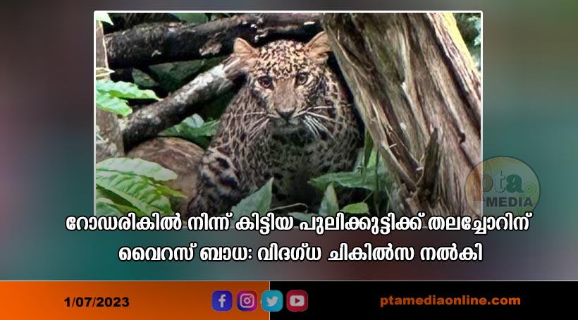റാന്നി: സീതത്തോട് കൊച്ചുകോയിക്കലിൽ റോഡരികിൽ നിന്നും പരുക്കേറ്റ നിലയിൽ കിട്ടിയ പുലിക്കുഞ്ഞിന് വിദഗ്ധ ചികിൽസ നൽകി. പത്തനംതിട്ടയിലെ ജില്ലാ മൃഗാശുപത്രിയിൽ എത്തിച്ചാണ് ചികിൽസ കൊടുത്തത്. പുലിക്കുട്ടിയെ കണ്ട വിവരം നാട്ടുകാരാണ് വനപാലകരെ അറിയിച്ചത്. കൊച്ചുകോയിക്കൽ ഫോറസ്റ്റ് സ്റ്റേഷനിലെ വനപാലകരാണ് പുലിക്കുട്ടിയെ വല ഉപയോഗിച്ച് പിടിച്ചത്.