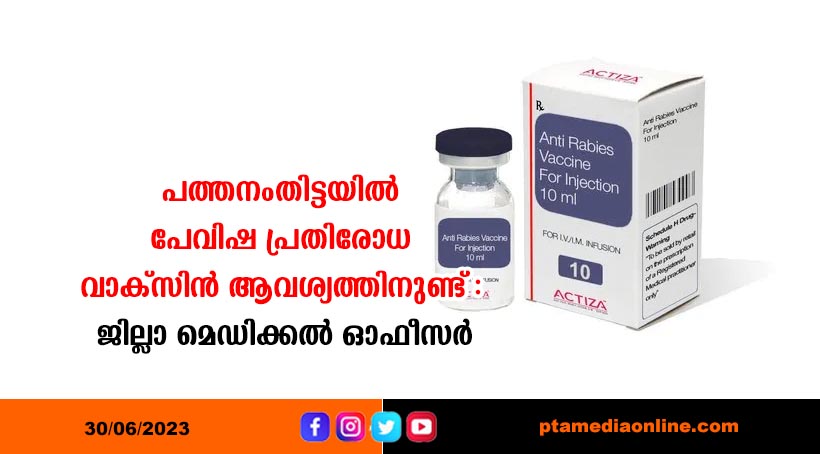 പത്തനംതിട്ട – ജില്ലയിലെ പ്രാഥമികാരോഗ്യകേന്ദ്രങ്ങൾ ഉൾപ്പെടെയുളള എല്ലാ സർക്കാർ ആശുപത്രികളിലും പേവിഷ പ്രതിരോധ വാക്സിനായ ഐ.ഡി.ആർ.വി. ആവശ്യത്തിന് ശേഖരിച്ചിട്ടുണ്ടെന്ന് ജില്ലാ മെഡിക്കൽ ഓഫീസർ (ആരോഗ്യം) ഡോ.എൽ അനിതകുമാരി അറിയിച്ചു. കടിയേറ്റ ദിവസം പൂജ്യം ഡോസ,് അടുത്ത ദിവസം മുതലുളള മൂന്നാം ദിവസം, ഏഴാം ദിവസം, ഇരുപത്തിയെട്ടാം ദിവസം എന്നവിധത്തിലാണ് നാല് ഡോസുകളും സ്വീകരിക്കേണ്ടത്. മൃഗങ്ങളുടെ മാന്തൽ, കടി എന്നിവ മൂലം മുറിവുണ്ടായി രക്തം പൊടിയുക, മുറിവുളള തൊലിപ്പുറത്ത് നക്കുക, ചുണ്ടിലോ വായിലോ നക്കുക, വന്യമൃഗങ്ങളിൽ നിന്ന് കടിയോ മാന്തലോ ഏൽക്കുക എന്നീ ഘട്ടങ്ങളിൽ ഡോക്ടറുടെ നിർദ്ദേശപ്രകാരം ഐ.ഡി.ആർ.വി.യ്ക്ക് പുറമേ ഇമ്മ്യൂണോ ഗ്ലോബുലിൻ കൂടി എടുക്കേണ്ടതാണ്. പത്തനംതിട്ട ജനറൽ ആശുപത്രി, അടൂർ ജനറൽ ആശുപത്രി, കോഴഞ്ചേരി ജില്ലാ ആശുപത്രി, തിരുവല്ല താലൂക്ക് ആശുപത്രി, റാന്നി താലൂക്ക് ആശുപത്രി, എന്നിവിടങ്ങളിൽ ഇമ്മ്യൂണോ ഗ്ലോബുലിൻ ലഭ്യമാണ്.