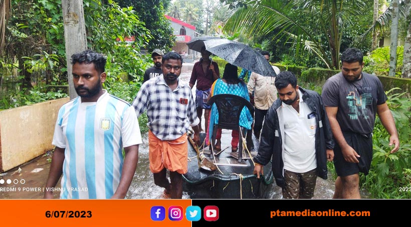 Thiruvalla – വെള്ളംകയറിയ സ്ഥലങ്ങളിൽ രക്ഷാ പ്രവർത്തനങ്ങളുമായി രാഷ്ട്രീയ സന്നദ്ധ സംഘടനകൾ സജീവമായി രംഗത്തുണ്ട് എന്നത് നമ്മുടെ സാമൂഹിക നന്മ. ഇരവിപേരൂർ പൂവപ്പുഴയിൽ അടിയന്തിരമായി ഡയാലിസിസ് ചെയ്യേണ്ട രോഗിയെ ആശുപത്രിയിൽ എത്തിക്കാൻ ഇടപെട്ട സേവാഭാരതി പ്രവർത്തകർക്ക് ബിഗ് സല്യൂട്ട് !!