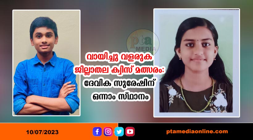 പത്തനംതിട്ട – പിഎൻ പണിക്കരുടെ സ്മരണാർഥം വായനാദിന-മാസാചരണത്തിന്റെ ഭാഗമായി ഹൈസ്കൂൾ വിദ്യാർഥികൾക്കായി സംഘടിപ്പിച്ച വായിച്ചു വളരുക ക്വിസ് മത്സരത്തിൽ പന്തളം തോട്ടക്കോണം ഗവ എച്ച്എസ്എസിലെ ദേവിക സുരേഷ് ഒന്നാംസ്ഥാനവും കലഞ്ഞൂർ ഗവ എച്ച്എസ്എസിലെ വി. നിരഞ്ജൻ രണ്ടാം സ്ഥാനവും നേടി. ജൂലൈ 18ന് തിരുവനന്തപുരത്തു നടക്കുന്ന സംസ്ഥാനതല മത്സരത്തിൽ പങ്കെടുക്കുന്നതിന് ഇരുവരും യോഗ്യത നേടി.