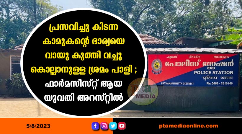 തിരുവല്ല: പിണങ്ങി മാറിയ കാമുകനോടുള്ള വിരോധം തീർക്കാൻ യുവതിയുടെ കടുംകൈ. കാമുകന്റെ പ്രസവിച്ചു കിടന്ന ഭാര്യയെ വായു ഞരമ്പിലൂടെ കുത്തി വച്ച് കൊല്ലാൻ ശ്രമിച്ച യുവതിയെ പുളിക്കീഴ് പോലീസ് അറസ്റ്റ് ചെയ്തു. കായംകുളം പുല്ലുകുളങ്ങര സ്വദേശി അപ്പുവിന്റെ ഭാര്യ അനുഷ (25) യാണ് പിടിയിലായത്. വെള്ളിയാഴ്ച വൈകിട്ട് മൂന്നിന് പരുമലയിലെ സ്വകാര്യ ആശുപത്രിയിലെ മുറിയിൽ നഴ്സിന്റെ വേഷം ധരിച്ചു കടന്നാണ് യുവതി പ്രതികാരത്തിനൊരുങ്ങിയത്. കായംകുളം കരിയിലക്കുളങ്ങര സ്വദേശി അരുണിന്റെ ഭാര്യ സ്നേഹ(24)യാണ് ആശുപത്രി അധികൃതരുടെ ഇടപെടൽ മൂലം രക്ഷപ്പെട്ടത്.
