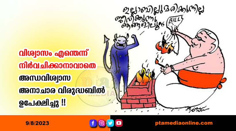 കൊച്ചി : അന്ധവിശ്വാസ- അനാചാരങ്ങൾ തടയാൻ ബിൽ കൊണ്ടുവരാനുള്ള ശ്രമം സംസ്ഥാന സർക്കാർ ഉപേക്ഷിച്ചു. വിശ്വാസം എന്തെന്നു നിർണയിക്കാനും നിർവചിക്കാനും സർക്കാരിനു അധികാരമില്ലെന്ന നിയമോപദേശത്തെത്തുടർന്നാണിത്.