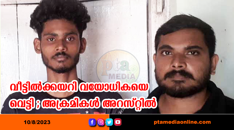 തിരുവല്ല: അതിക്രമിച്ച് വീട്ടില് കയറി വയോധികയെ വെട്ടിപ്പരുക്കേല്പ്പിച്ചുവെന്ന പരാതിയല് രണ്ടു യുവാക്കളെ പൊലീസ് അറസ്റ്റ് ചെയ്തു. കേസില് കൂടുതല് പ്രതികളുണ്ടെന്ന് പൊലീസ് പറഞ്ഞു. കല്ലുങ്കല് മംഗല പറമ്പില് കൃപാലയത്തില് ശോശാമ്മ ഫിലിപ്പി(67)ന്റെ വീട്ടില് അതിക്രമം നടത്തിയ കല്ലുങ്കല് തൈപ്പറമ്പില് വീട്ടില് റോബിന് (19), പൊടിയാടി കോയപ്പള്ളി വീട്ടില് മനു (30) എന്നിവരാണ് വ്യാഴാഴ്ച പുലര്ച്ചെയോടെ പിടിയിലായത്.