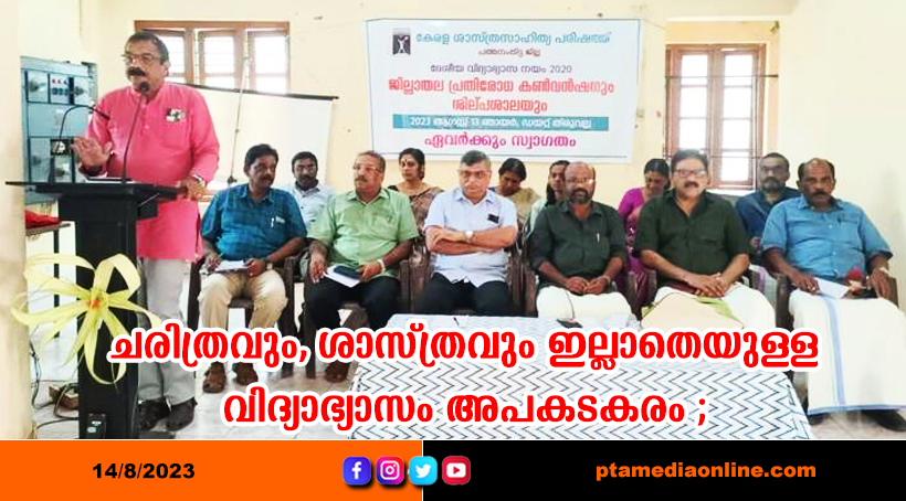 തിരുവല്ല: ചരിത്ര വസ്തുതകളെയും ശാസ്ത്ര സത്യങ്ങളെയും എൻ.സി.ഇ.ആർ.ടി പാഠപുസ്തകങ്ങളിൽ നിന്നും ഒഴിവാക്കി ശാസ്ത്രവിരുദ്ധ വിദ്യാഭ്യാസം കുട്ടികളിൽ അടിച്ചേൽപ്പിച്ച് രാജ്യത്തെ തകർക്കാനുള്ള നീക്കത്തിൽ കേരള ശാസ്ത്ര സാഹിത്യ പരിഷത്ത് ജില്ലാതല കൺവെൻഷൻ പ്രതിഷേധിച്ചു. പുതിയ വിദ്യാഭ്യാസ നയത്തിലൂടെ വർഗിയവൽക്കരണത്തിന് കേന്ദ്രസർക്കാർ തിടുക്കം കൂട്ടുകയാണെന്നും കെട്ടുകഥകളെ ശാസ്ത്ര-ചരിത്ര സത്യങ്ങളായി അവതരിപ്പിച്ച് പൊതുവിദ്യാലയങ്ങൾ പൂട്ടിക്കാനുള്ള അപകടകരമായ വിദ്യാഭ്യാസനയത്തിൽ നിന്ന് പിന്തിരിയണമെന്നും കൺവെൻഷൻ ആവശ്യപ്പെട്ടു.