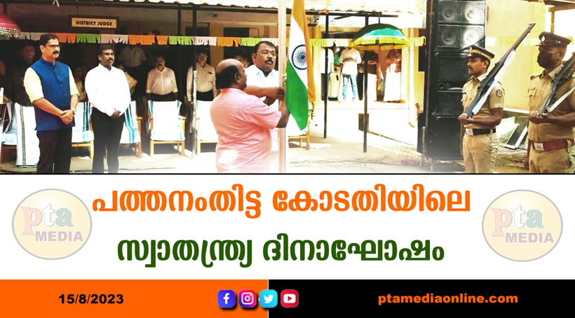 പത്തനംതിട്ട – ജില്ലാ ബാർ അസോസിയേഷന്റെയും ജില്ലാ കോടതിയുടെയും സംയുക്താഭിമുഖ്യത്തിൽ സ്വാതന്ത്ര്യ ദിനാഘോഷം രാവിലെ ബാർ അസ്സിയേഷൻ ജില്ലാ പ്രസിഡന്റ് അഡ്വ. ഷാം കുരുവിള ദേശീയ പതാക ഉയർത്തിയതോടെ ആരംഭിച്ചു.. ജില്ലാ പ്രിൻസിപ്പൽ സെഷൻസ് ജഡ്ജ് ശ്രീ. സെയ്ദലവി സ്വാതന്ത്ര്യ ദിന സന്ദേശം നൽകി. തുടർന്ന് കോടതി ജീവനക്കാർക്കുള്ള മെറിറ്റ് സർട്ടിഫിക്കറ്റ് വിതരണവും അദ്ദേഹം നിർവ്വഹിച്ചു.