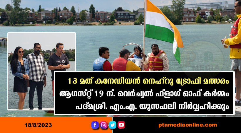 ബ്രാംപ്റ്റൺ: കനേഡിയൻ നെഹ്റു ട്രോഫി മത്സരം ആഗസ്റ്റ് 19 ന് നടക്കും. വെർച്വൽ ഫ്ളാഗ് ഓഫ് കർമ്മം പദ്മശ്രീ.എം.എ. യൂസഫലി നിർവ്വഹിക്കും. കനേഡിയൻ മലയാളികൾക്കിനി ആവേശമുണർത്തുന്ന മണിക്കൂറുകൾ. രാവിലെ 10 മുതൽ വൈകീട്ട് 5 മണി വരെ ഒന്റേരിയോയിലെ പ്രൊഫസേഴ്സ് ലെയിക്കിലാണ് മത്സരം അരങ്ങേറുന്നത്. ബ്രാംപ്റ്റൺ മലയാളി സമാജത്തിന്റെ നേതൃത്വത്തിലാരംഭിച്ച ‘ദി ബ്രാംപ്റ്റൺ ബോട്ട് റേസ്‘ ഏതൊരു പ്രവാസി മലയാളിക്കും സ്വന്തം നാടിന്റെ സാംസ്കാരിക പാരമ്പര്യത്തെക്കുറിച്ചോർത്ത് അഭിമാനം തോന്നുമാറ് പ്രൗഢോജ്വലമാണ്.