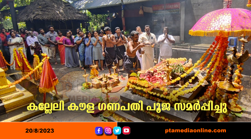 കോന്നി :വിനായക ചതുർഥിയോട് അനുബന്ധിച്ച് കല്ലേലി ഊരാളി അപ്പൂപ്പൻ കാവിൽ (മൂലസ്ഥാനം )കല്ലേലി കൗള ഗണപതി പൂജ സമർപ്പിച്ചു.കല്ലേലി അമ്മൂമ്മ കല്ലേലി ഊരാളി അപ്പൂപ്പൻ എന്നിവർക്ക് പ്രഭാത പൂജകൾ നൽകിയ ശേഷം കൗള ഗണപതി നടയിൽ ആണ് പൂജ നടന്നത്.