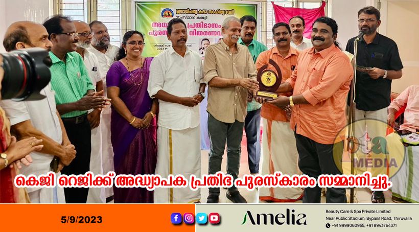 കെജി റെജിക്ക് അദ്ധ്യാപക പ്രതിഭ പുരസ്കാരം സമ്മാനിച്ചു.