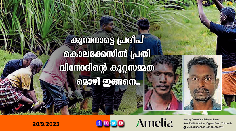 തന്റെ ഭാര്യയുമായി പ്രദീപിനുണ്ടായിരുന്ന അവിഹിത ബന്ധമാണ് കൊലയ്ക്ക് കാരണം. ഭാര്യയെയും കൊല്ലാൻ പദ്ധതിയുണ്ടായിരുന്നുവെന്നും പോലീസിന് വിനോദ് മൊഴി നൽകി. കൊലയ്ക്ക് ഉപയോഗിച്ച കത്തി പ്രദീപിന്റെ വീടിന് പിന്നിലെ കുറ്റിക്കാട്ടിൽ നിന്നും ആ സമയം മോൻസി ധരിച്ചിരുന്ന വസ്ത്രങ്ങൾ ഇയാളുടെ വീട്ടിൽ നിന്നും കണ്ടെടുത്തു.