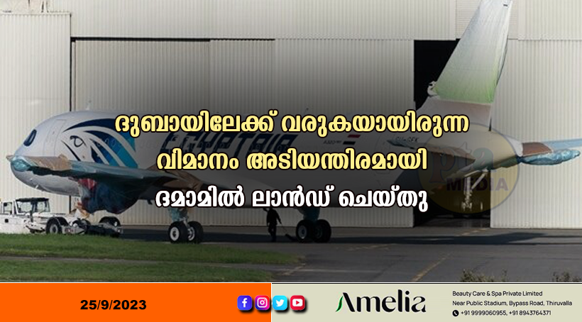 ദുബായിലേക്ക് വരുകയായിരുന്ന വിമാനം അടിയന്തിരമായി ദമാമിൽ ലാൻഡ് ചെയ്തു
