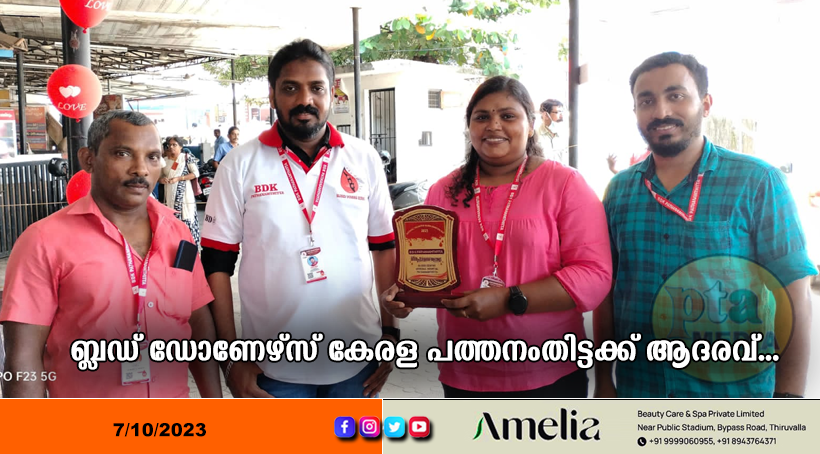 ദേശീയ സന്നദ്ധ രക്തദാന ദിനത്തോട് അനുബന്ധിച്ച് പത്തനംതിട്ട ജനറൽ ആശുപത്രിയിൽ വെച്ചു നടന്ന പൊതുസമ്മേളനത്തിൽ ജനറൽ ആശുപത്രി പത്തനംതിട്ട നൽകിയ ആദരവ് പത്തനംതിട്ട നഗരസഭ ചെയർമാൻ Adv :സക്കീർ ഹുസൈൻ ബ്ലഡ് ഡോണേഴ്സ് കേരള പത്തനംതിട്ട ഭാരവാഹികൾക്ക് നൽകി.. BDK വൈസ് പ്രസിഡന്റ് ഷൈജു മോനും മറ്റു ജില്ലാ എക്സിക്യൂട്ടീവ് അംഗങ്ങളും പങ്കെടുത്തു.