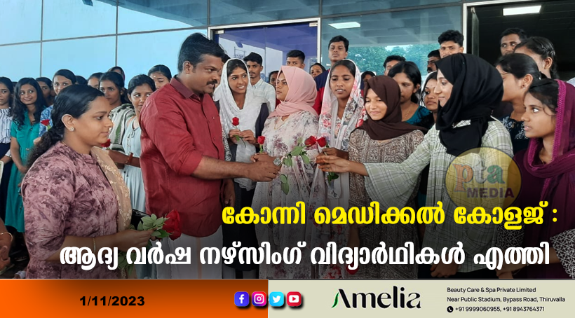 കോന്നി – മെഡിക്കൽ കോളജിലെ നഴ്സിംഗ് വിദ്യാർഥികളുടെ ആദ്യബാച്ച് പ്രവേശനോത്സവം ആഘോഷമായി. എം എൽ എ അഡ്വ. കെ യു ജനീഷ്കുമാറിന്റെ നേതൃത്വത്തിൽ വിദ്യാർഥികൾക്ക് പൂച്ചെണ്ട് നൽകി സ്വീകരിച്ചു. എം ബി ബി എസ് വിദ്യാർഥികൾക്കായുള്ള എല്ലാ സൗകര്യങ്ങളും ഉപയോഗിച്ച് ഇവിടെ നഴ്സിംഗ് പഠിക്കാനെത്തിയ വിദ്യാർഥികൾക്കും അധ്യയനം നടത്താൻ സാധിക്കുമെന്നതു വലിയ കാര്യമാണെന്ന് ഉദ്ഘാടനം നിർവഹിച്ച എംഎൽഎ പറഞ്ഞു. അതിവേഗം വളരുന്ന മെഡിക്കൽ കോളജാണ് കോന്നിയിലേത്. അന്യസംസ്ഥാനത്തേക്കു കേരളത്തിലെ കുട്ടികൾ നഴ്സിംഗ് പഠനത്തിനായി പോകുന്നതിനുള്ള പരിഹാരമായാണ് സംസ്ഥാനസർക്കാർ കേരളത്തിൽ അതിനുള്ള അവസരമൊരുക്കിയത്. മുഖ്യമന്ത്രി പിണറായി വിജയന്റേയും ആരോഗ്യമന്ത്രി വീണാജോർജിന്റേയും ഉന്നതവിദ്യാഭ്യാസവകുപ്പ് മന്ത്രി ആർ. ബിന്ദുവിന്റേയും നേതൃത്വത്തിൽ മികച്ച പ്രവർത്തനങ്ങളാണ് നടത്തുന്നത്. 20 നഴ്സിംഗ് കോളേജ് സർക്കാർ പുതുതായി അനുവദിച്ചതിൽ രണ്ടെണ്ണം കോന്നിയിലാണ്. കോളജിന്റെ പുതിയ കെട്ടിടത്തിനായി മൂന്നേക്കർ സ്ഥലം അനുവദിച്ചിട്ടുണ്ടെന്നും എംഎൽഎ പറഞ്ഞു.