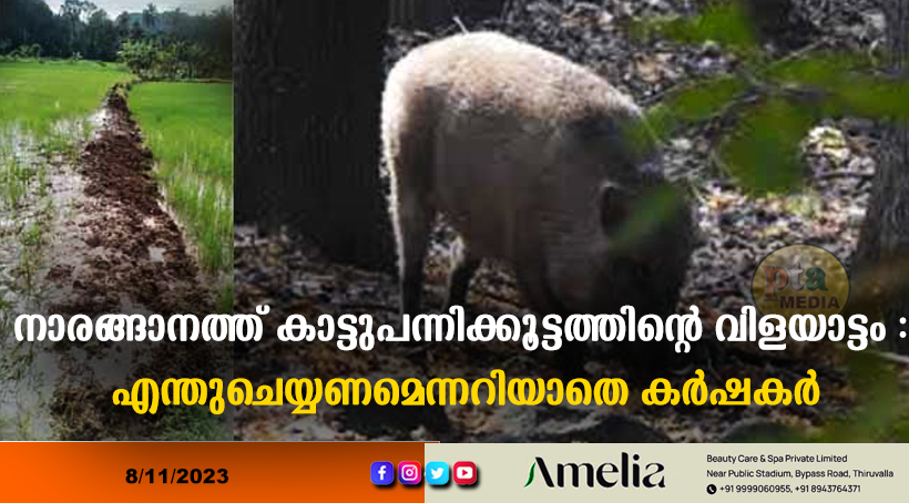 നാരങ്ങാനം: കാട്ടുപന്നിക്കൂട്ടം അവശേഷിക്കുന്ന കൃഷിയും നശിപ്പിച്ച് മുന്നോട്ട്. എന്തു ചെയ്യണമെന്നറിയാതെ കർഷകർ. ഒന്നും ചെയ്യാൻ കഴിയാതെ അധികാരികൾ. കാര്യം കൈവിട്ടു പോകുകയാണ്. കൃഷിയുടെ അവസാന വിത്തും ചവിട്ടിയരച്ച് പന്നികൾ പായുമ്പോൾ കൃഷി ഉപജീവനമാക്കിയ കർഷകരുടെ വീടുകളിൽ കണ്ണീര് വീഴുന്നു. നിയമത്തിന്റെ കാർക്കശ്യം കുറച്ച് കർഷകരുടെ ഭാഗത്ത് നിൽക്കാൻ അധികാരികൾക്ക് കഴിയുന്നുമില്ല. പന്നിയുടെ ആക്രമണത്തിൽ യുവാവ് മരിച്ചിട്ട് പോലും പ്രതിരോധിക്കാൻ ആരും ഒന്നും ചെയ്യുന്നില്ല. വ്യാപാരികളും കർഷകരും ചേർന്ന് സമരം സംഘടിപ്പിച്ചു. തുടർ സമരങ്ങൾക്ക് ആലോചനയും നടക്കുന്നു.