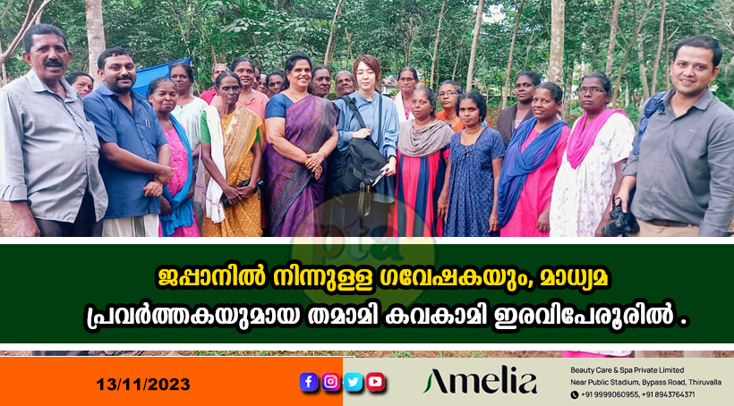 ഫോട്ടോ: ജപ്പാനിൽ നിന്നുള്ള ഗവേഷകയും മാധ്യമ പ്രവർത്തകയുമായ തമാമി കവകാമി ഇരവിപേരൂർ പഞ്ചായത്തിലെ തൊഴിലുറപ്പ് പ്രവർത്തനങ്ങൾ നേരിൽ സന്ദർശിച്ചപ്പോൾ. പഞ്ചായത്ത് വൈസ് പ്രസിഡന്റ് സാലി ജേക്കബി, പൊതു പ്രവർത്തകനായ സുബിൻ നീറുംപ്ലാക്കൽ എന്നിവർ സമീപം.
