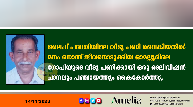 ലൈഫ് പദ്ധതിയിലെ വീടു പണി വൈകിയതിൽ മനം നൊന്ത് ജീവനൊടുക്കിയ ഓമല്ലൂരിലെ ഗോപിയുടെ വീടു പണിക്കായി ഒരു ടെലിവിഷൻ ചാനലും പഞ്ചായത്തും കൈകോർത്തു.