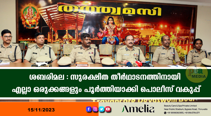 പമ്പ – സുരക്ഷിത തീർത്ഥാടനത്തിനായി ശബരിമലയിൽ എല്ലാ ഒരുക്കങ്ങളും പൂർത്തിയായതായി ഡിജിപി ഷെയ്ഖ് ദർവേശ് സാഹിബ് പറഞ്ഞു. ശബരിമല തീർഥാടനവുമായി ബന്ധപ്പെട്ട ഒരുക്കങ്ങൾ ചർച്ച ചെയ്യുന്നതിനായി പമ്പയിൽ ചേർന്ന യോഗത്തിന് ശേഷം മാധ്യമങ്ങളോട് സംസാരിക്കുകയായിരുന്നു അദ്ദേഹം. ആറ് ഘട്ടങ്ങളിലായി പതിമൂവായിരം പൊലീസുകാർ തീർഥാടനകാലയളവിൽ ഡ്യൂട്ടിയിലുണ്ടാകും. കുട്ടികൾക്കും മുതിർന്നവർക്കും ദർശനത്തിന് പ്രത്യേക സൗകര്യം ഒരുക്കും. വാഹനങ്ങളിൽ അലങ്കാരങ്ങൾ ഉപയോഗിക്കരുത്. സന്നിധാനം, നിലയ്ക്കൽ, വടശേരിക്കര എന്നിവിടങ്ങളിൽ മൂന്ന് താത്കാലിക പൊലീസ് സ്റ്റേഷനുകൾ നിർമിക്കും. ഡ്രോൺ സംവിധാനം ഉപയോഗിക്കും. 15 കൗണ്ടറുകളിലായാണ് വെർച്വൽ ക്യു സംവിധാനം ഏർപ്പെടുത്തിയിരിക്കുന്നത്. എല്ലാ ഇടത്താവളങ്ങളിലും തീർഥാടകരുടെ വാഹനം പാർക്ക് ചെയ്യുന്നതിനായി സൗകര്യം ഏർപ്പെടുത്തിയിട്ടുണ്ട്. പമ്പയിലെത്തുന്ന തീർഥാടകരുടെ വാഹനം നിലയ്ക്കലിലാണ് പാർക്ക് ചെയ്യേണ്ടത്. 17 ഗ്രൗണ്ടുകളിലായി അവിടെ പാർക്കിംഗ് സൗകര്യം ഏർപ്പെടുത്തിയിട്ടുണ്ട്. ദേവസ്വം ബോർഡിന്റെ നേതൃത്വത്തിൽ ഫാസ്റ്റ് ടാഗ് സംവിധാനം ഉപയോഗിച്ചാണ് പാർക്കിംഗ് അനുവദിക്കുന്നതെന്നും വരുന്ന എല്ലാ വാഹനങ്ങൾക്കും ഫാസ്റ്റ് ടാഗ് സംവിധാനമുണ്ടായിരിക്കണമെന്നും അദ്ദേഹം പറഞ്ഞു.