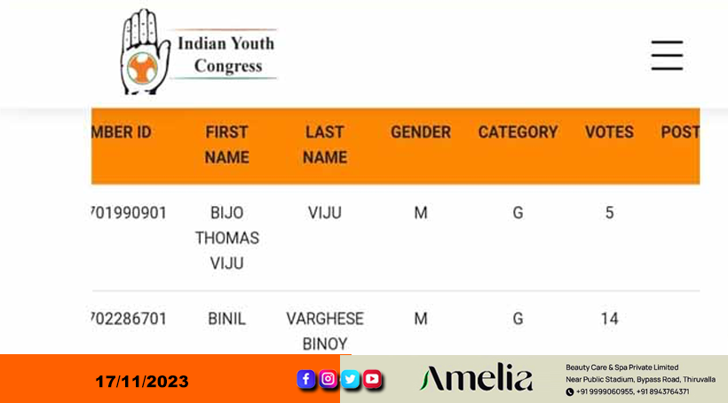 15 വോട്ട് കിട്ടിയില്ല : ജില്ലയില്‍ രണ്ടു മണ്ഡലങ്ങളില്‍ യൂത്ത് കോണ്‍ഗ്രസിന് പ്രസിഡന്റില്ല :