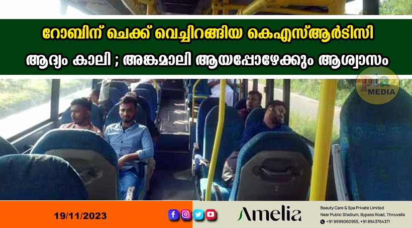 പത്തനംതിട്ട – റോബിൻ മോട്ടോഴ്സിനെ തളയ്ക്കാൻ വേണ്ടി കെഎസ്ആർടിസി ആരംഭിച്ച അരമണിക്കൂർ മുമ്പുള്ള പത്തനംതിട്ട – കോയമ്പത്തൂർ സർവ്വീസിന് തുടക്കം കാലിയായി. . പുലർച്ചെ നാലരയ്ക്ക് പത്തനംതിട്ടയിൽ നിന്ന് പുറപ്പെടുമ്പോൾ ഡ്രൈവറും കണ്ടക്ടറും മാത്രമാണ് ഉണ്ടായിരുന്നത്. സീറ്റുകൾ മുഴുവൻ കാലിയായിരുന്നു. എന്നാൽ, അങ്കമാലി ഒക്കെ ആയപ്പോഴേക്കും ബസിന്റെ സീറ്റുകൾ ഏറെക്കുറെ മുഴുവൻ ആളായി.