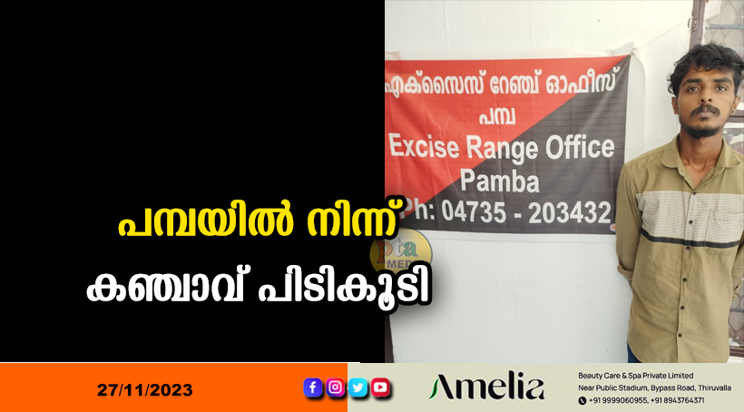 പമ്പ അസിസ്റ്റന്റ് എക്സൈസ് കമ്മീഷണർ എം നൗഷാദിന്റെ നിർദേശാനുസരണം സർക്കിൾ ഇൻസ്പെക്ടർ ജി വിജയകുമാറും സംഘവും പമ്പ ത്രിവേണി പാലത്തിനു സമീപം നടത്തിയ റെയ്ഡിൽ അഞ്ചു ഗ്രാം ഉണക്കകഞ്ചാവുമായി മാവേലിക്കര സ്വദേശി ആദർശ് സതീഷ് അറസ്റ്റിലായി. ഇയാളെ തുടർനടപടികൾക്കായി ചിറ്റാർ റേഞ്ചിന് കൈമാറി. എക്സൈസ് ഇൻസ്പക്ടർ സുമേഷ്, പി ഒ മാരായ ജയൻ പി ജോൺ, കെ കെ സുരേഷ് , സിഇഒ മാരായ രാഹുൽ, മണികണ്ഠൻ എന്നിവർ പരിശോധനയിൽ പങ്കെടുത്തു.