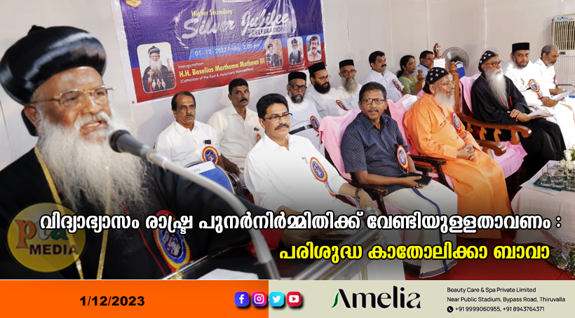 തിരുവല്ല : വിദ്യ പകർന്ന് നൽകുന്നതിനോടൊപ്പം സംസ്കാര സമ്പന്നരായ ഒരു കൂട്ടം ആളുകളെ സൃഷ്ടിക്കുക എന്നത് പ്രധാന ദൗത്യമായി വിദ്യാഭ്യാസ സ്ഥാപനങ്ങൾ ലക്ഷ്യം വെക്കണമെന്ന് പരിശുദ്ധ ബസേലിയോസ് മാർത്തോമ്മാ മാത്യൂസ് തൃത്രിയൻ കാതോലിക്കാ ബാവ. എം.ജി.എം സ്കൂളിലെ ഹയർ സെക്കണ്ടറി വിഭാഗം ആരംഭിച്ചതിന്റെ രജത ജൂബിലി ആഘോഷം ഉദ്ഘാടനം ചെയ്യുകയായിരുന്നു പരിശുദ്ധ ബാവ. വിദ്യാഭ്യാസം രാഷ്ട്ര പുനർനിർമ്മിതിക്ക് വേണ്ടിയുള്ളതാകണം, പഠന കാലത്ത് കുട്ടികൾ നിരാശരാകാതിരുന്നാൽ മാത്രമേ പിന്നീടുള്ള ജീവിതം മധുരമുള്ളതാകുകയുള്ളു പരിശുദ്ധ ബാവാ തിരുമേനി പറഞ്ഞു. സ്കൂൾ മാനേജർ ഡോ. ഗബ്രിയേൽ മാർ ഗ്രിഗോറിയോസ് അധ്യക്ഷത വഹിച്ചു. പരിശുദ്ധ എപ്പിസ്ക്കോപ്പൽ സുന്നഹദോസ് സെക്രട്ടറി ഡോ. യൂഹാനോൻ മാർ ക്രിസോസ്റ്റമോസ് ജൂബിലി പദ്ധതികൾ ഉദ്ഘാടനം ചെയ്തു. ഗവൺമെൻറ് ചീഫ് വിപ്പ് ഡോ.എൻ. ജയരാജ് മുഖ്യപ്രഭാഷണം നടത്തി. വൈദിക ട്രസ്റ്റി ഫാ. ഡോ. തോമസ് വർഗീസ് അമയിൽ, അസോസിയേഷൻ സെക്രട്ടറി അഡ്വ. ബിജു ഉമ്മൻ, റീജണൽ ഡെപ്യൂട്ടി ഡയറക്ടർ അശോക് കുമാർ വി.കെ സ്കൂൾ പ്രിൻസിപ്പൽ പി.കെ തോമസ്, ഫാ. സി.വി ഉമ്മൻ, ഫാ. ഷിബു ടോം വർഗീസ്, സഭാ മാനേജിംഗ് കമ്മിറ്റിയംഗങ്ങളായ ഫാ. ചെറിയാൽ പി. വർഗീസ്, ജോജി പി. തോമസ്, പി.ടി.എ പ്രസിഡന്റ് സാബു ജേക്കബ്, ജേക്കബ് കെ.വർക്കി, റോഷ് വി. കുറിയാക്കോസ് ലാലി മാത്യു, ഷിജോ ബേബി, സൂസൻ ഐ. ചീരൻ എന്നിവർ പ്രസംഗിച്ചു.