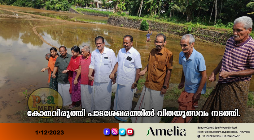 തിരുവല്ല – കുറ്റൂരിലെ വലിയ പാടശേഖരമായ കോതവിരുത്തി പാടശേഖരത്തിൽ വിതയുത്സവം നടത്തി.100 ഏക്കറോളം സ്ഥലത്താണ് ഇത്തവണകൃഷി ഇറക്കിയിരിക്കുന്നത്. വിതയുത്സത്തിന്റെ ഉദ്ഘാടനം ഗ്രാമപഞ്ചായത്ത് മുൻ പ്രസിഡന്റും മെമ്പറുമായ ജോ ഇലഞ്ഞിമൂട്ടിൽ നിർവഹിച്ചു. പാടശേഖരസമിതി പ്രസിഡന്റ് കെ. എസ്. എബ്രഹാം അധ്യക്ഷതവഹിച്ചു. ഗ്രാമപഞ്ചായത്ത് സ്റ്റാൻഡിങ് കമ്മിറ്റി ചെയർമാനും പാടശേഖരസമിതി സെക്രട്ടറിയുമായ എൻ.ടി. എബ്രഹാം, കൃഷി ഓഫീസർ താരാ മോഹൻ, കാർഷിക വികസന സമിതി അംഗം വി. ആർ. രാജേഷ്, അസിസ്റ്റന്റ് കൃഷി ഓഫീസർ ലിജി, കർഷക സമിതി അംഗങ്ങളായ എം. എം കുര്യൻ, ജോസഫ് എബ്രഹാം, ബിബിൻ മുളമൂട്ടിൽ, എം. എം. മാത്യു, രമ്യ തമ്പി, അന്നമ്മ എബ്രഹാം, ജെസ്സി കുര്യൻ, എന്നിവർ പ്രസംഗിച്ചു