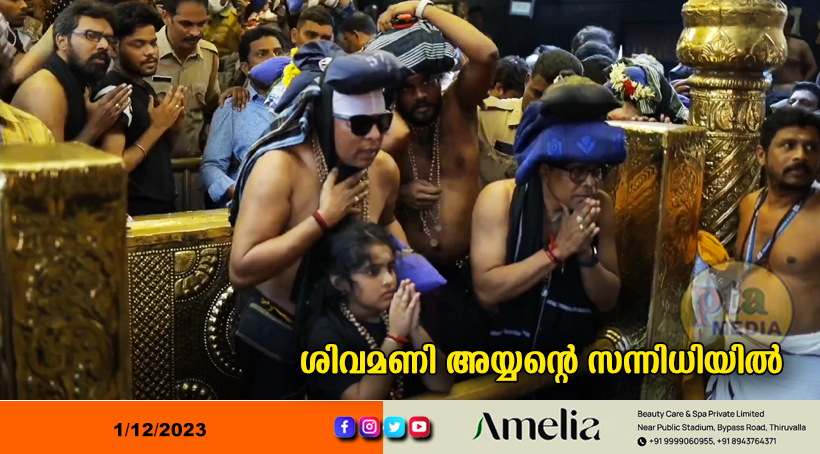 സന്നിധാനം – പ്രശസ്ത ഡ്രം വിദഗ്ദൻ ശിവമണി ശബരിമല ദർശനം നടത്തി. രാവിലെ ഏഴു മണിക്കാണ് അദ്ദേഹം മകൾ മിലാനയോടൊപ്പം ദർശനത്തിന് എത്തിയത്. ഇരുമുടിക്കെട്ടേന്തി പതിനെട്ടാംപടി ചവിട്ടിയാണ് ശിവമണിയും സംഘവും അയ്യപ്പ ദർശനം നടത്തിയത്. തന്ത്രി കണ്ഠര് മഹേശ്വര് മോഹനരേയും, ശബരിമല മേൽശാന്തി പി.എൻ. മഹേഷ് നമ്പൂതിരിയേയും കണ്ടതിനു ശേഷമാണ് അദ്ദേഹം മലയിറങ്ങിയത്. മേൽശാന്തി ശിവമണിയേയും, ഗായകൻ സുധീപ് കുമാർ, കീബോർഡ് പ്ലയറും ഈ വർഷത്തെ സംഗീത നാടക അക്കാദമി ജേതാവുമായ പ്രകാശ് ഉള്ളിയേരിയേയും പൊന്നാടയണിയിച്ചാദരിച്ചു. പിറന്നാൾ ദിനത്തിൽ അയ്യപ്പനെ കാണാൻ കഴിഞ്ഞത് ഏറെ ഭാഗ്യമെന്നും തൻ്റെ ഉയർച്ചയ്ക്കു കാരണം അയ്യപ്പനാണെന്നും ഇനിയും താൻ അയ്യനെ കാണാൻ തിരുനടയിലെത്തുമെന്നും ശിവമണി പറഞ്ഞു.