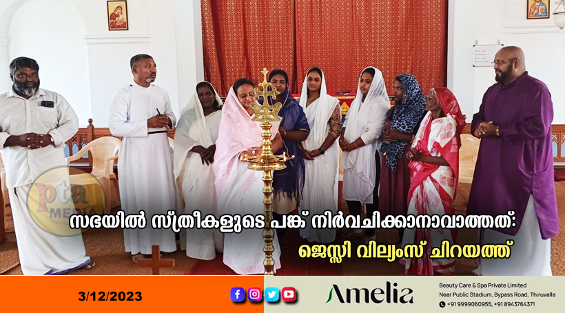 നിരണം: സഭാ ചരിത്രത്തിൽ സ്ത്രീകളുടെ പങ്ക് അവർണ്ണനീയമാണെന്നും ലോക രക്ഷിതാവിന് ജന്മം നല്കിയതും ഉയർത്തെഴുന്നേറ്റ യേശു ക്രിസ്തുവിനെ പറ്റി ആദ്യം അപ്പോസ്ഥലൻമാരോട് പങ്കുവെച്ചതും സ്ത്രീ ആയിരുന്നുവെന്നും സഭയിൽ സ്ത്രീകളുടെ പങ്ക് നിർവചിക്കാനാവാത്തതെന്നും ജെസ്സി വില്യംസ് ചിറയത്ത് പ്രസ്താവിച്ചു. സെൻ്റ് തോമസ് ബിലീവേഴ്സ് ഈസ്റ്റേൺ ചർച്ച് നിരണം ഇടവകയുടെ വുമൺസ് ഫെലോഷിപ്പ് വാർഷികസമ്മേളനം ഉദ്ഘാടനം ചെയ്യുകയായിരുന്നു വുമൺസ് ഫെലോഷിപ്പ് പ്രസിഡൻ്റ് ജെസ്സി വില്യംസ് .