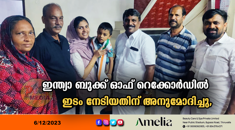 പത്തനംതിട്ട – രണ്ട് വയസ്സും ഏഴ് മാസവും മാത്രം പ്രായമുള്ള പത്തനംതിട്ട സ്വദേശി മുഹമ്മദ് ഹാമിസ് ഇബ്നു അജ്മൽ ലിംകാ ബുക്ക് ഓഫ് റെക്കോർഡിൽ ഇടം നേടിയിരുന്നു, ജില്ലാ കോൺഗ്രസ് കമ്മിറ്റി വൈസ് പ്രസിഡന്റ്, മുൻ നഗരസഭാ ചെയർമാനുമായ എ സുരേഷ്കുമാറിന്റെ നേതൃത്വത്തിൽ വീട്ടിൽ എത്തി അനുമോദിച്ചു,