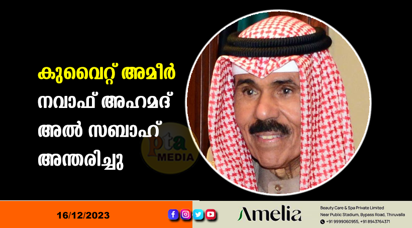 കുവൈറ്റ് സിറ്റി – അമീർ നവാഫ് അഹമദ് അൽ സബാഹ് 86 അന്തരിച്ചു. ഔദ്യോഗിക ടെലവിഷൻ വഴിയാണ് വാർത്ത രാജ്യത്തെ അറിയിച്ചത്. ദീർഘ കാലമായി അസുഖ ബാധിതനായി ചികിത്സയിൽ ആയിരുന്ന അമീറിനെ ആരോഗ്യ പ്രശ്‌നങ്ങൾ മൂർച്ചിച്ചതിനെ തുടർന്ന് നവംബർ 29 നു ആശുപത്രിയിൽ പ്രവേശിപ്പിച്ചിരുന്നു.