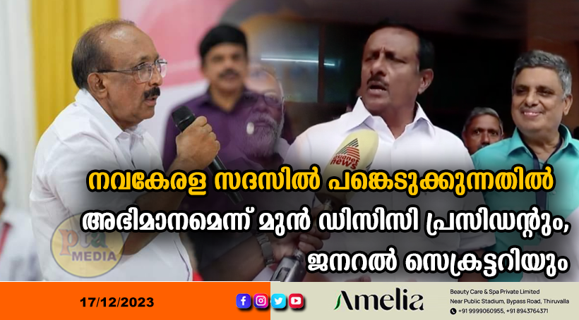പത്തനംതിട്ട – കോൺഗ്രസ്സ് തമ്മിലടി നേതാക്കളെ നവകേരളാ സദസ്സിലെത്തിച്ചു. കോൺഗ്രസ് മുൻ ഡിസിസി അധ്യക്ഷൻ ബാബു ജോർജും ഡിസിസി ജനറൽ സെക്രട്ടറിയായിരുന്ന സജി ചാക്കോയും ആണ് അഭിമാനത്തോടെയെന്ന് പറഞ്ഞുകൊണ്ട് നവ കേരള സദസ്സിൽ പങ്കെടുക്കാനെത്തിയത്. കോൺഗ്രസിൽ സംഘടനാ വിരുദ്ധ പ്രവർത്തനത്തിന് ഇരുവരും നടപടി നേരിട്ടിരുന്നു. കോൺഗ്രസിന്റെ ചുമതലകളിലേക്ക് തിരിച്ചുവരുമെന്ന ചർച്ചകൾ നടക്കുമ്പോഴാണ് ഇരു നേതാക്കളും നവകേരള സദസ്സിലേക്കുള്ള എൻട്രി. ഇരുവരെയും സ്വാഗതം ചെയ്യുന്നു എന്ന് സിപിഎം ജില്ലാ സെക്രട്ടറി കെ പി ഉദയഭാനു പ്രതികരിച്ചു.