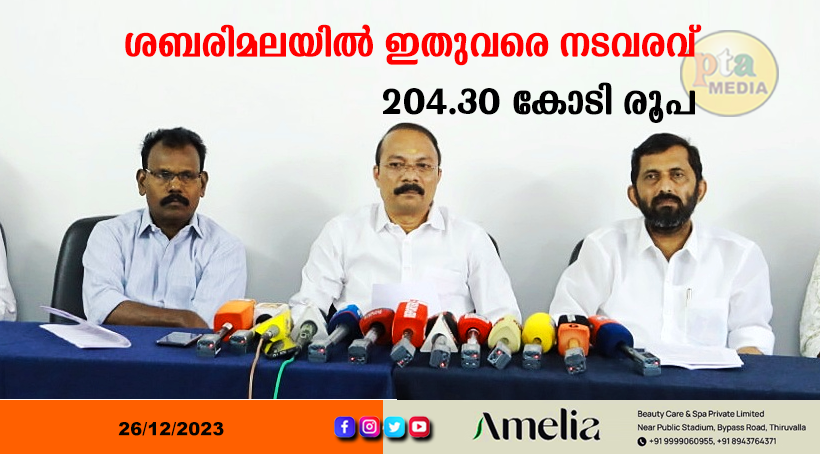 മണ്ഡലകാലം 39 ദിവസം പിന്നിട്ടപ്പോൾ ശബരിമലയിലെ നടവരവ് 204.30 കോടി രൂപയെന്നു തിരുവിതാംകൂർ ദേവസ്വം ബോർഡ് പ്രസിഡന്റ് പി.എസ്. പ്രശാന്ത്. ഡിസംബർ 25 വരെയുള്ള മൊത്തം നടവരവ് 204,30,76,704 രൂപയാണ്. കുത്തകലേലം, കാണിക്കയായി ലഭിച്ച നാണയങ്ങൾ എന്നിവ കൂടി എണ്ണിക്കഴിയുമ്പോൾ ഈ കണക്കിൽ കാര്യമായ മാറ്റമുണ്ടാകുമെന്നും മണ്ഡലപൂജ-മകരവിളക്ക് ഉത്സവം സംബന്ധിച്ചു സന്നിധാനം ദേവസ്വം ഗസ്റ്റ്ഹൗസിലെ കോൺഫറൻസ് ഹാളിൽ വിളിച്ചുചേർത്ത പത്രസമ്മേളനത്തിൽ പ്രസിഡന്റ് പറഞ്ഞു. കാണിക്കയായി ലഭിച്ചത് 63.89 കോടി രൂപയാണ്. (63,89,10,320). അരവണ വിൽപനയിൽ 96,32,44,610 രൂപയും(96.32 കോടി രൂപ), അപ്പം വിൽപനയിൽ 12,38,76,720( 12.38 കോടി രൂപ) രൂപയും ലഭിച്ചു.
