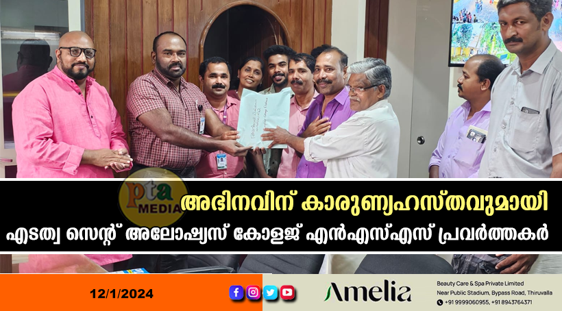 എടത്വ: അർബുദ രോഗം ബാധിച്ച് തിരുവനന്തപുരം റീജിയണൽ ക്യാൻസർ സെൻ്ററിൽ ശസ്ത്രക്രിയയ്ക്ക് വിധേയനാകുന്ന തലവടി ഗ്രാമപഞ്ചായത്ത് 13-ാം വാർഡിൽ കോടമ്പനാടി പുത്തൻപുരയ്ക്കൽ വീട്ടിൽ അഭിലാഷിൻ്റെയും സനിലകുമാരിയുടെയും മൂത്ത മകൻ അഭിനവിനുള്ള (11) ചികിത്സ സഹായ സമാഹരണം നാളെ നടക്കും.എടത്വ സെന്റ് അലോഷ്യസ് കോളജ് എൻഎസ്എസ് പ്രവർത്തകർ സമാഹരിച്ച അമ്പതിനായിരം രൂപ കോളജ് ഓഫിസിൽ നടന്ന ചടങ്ങിൽ പ്രിൻസിപ്പാൾ പ്രൊഫ. ഡോ. ജി. ഇന്ദുലാൻ, എൻ. എസ്. എസ് പ്രോഗ്രാം ഓഫിസർമാരായ മനോജ് സേവ്യർ,വി. ആർ ഇന്ദു, എൻ. എസ്. എസ് വോളണ്ടിയർ കെ.ജെ ആൽബിൻ എന്നിവരിൽ നിന്നും സമിതി ഭാരവാഹികൾ ഏറ്റ് വാങ്ങി.ചടങ്ങിൽ ഗ്രാമ പഞ്ചായത്ത് അംഗം ബിജു ജോർജ് അധ്യക്ഷത വഹിച്ചു.