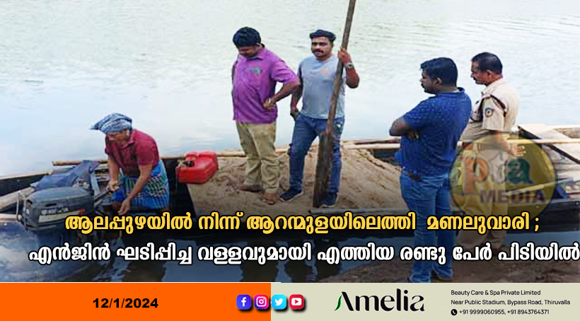 ആറന്മുള പോലീസ് സ്റ്റേഷൻ ഇൻസ്പെക്ടർ സി കെ മനോജിന്റെ നേതൃത്വത്തിൽ എസ്ഐ അലോഷ്യസ് , ഹരീന്ദ്രൻ നായർ , എഎസ് ഐ അജി, എസ് സി പി ഓ , പ്രദീപ്, സലിം, നാസർ, രാജഗോപാൽ, വിനോദ് ,സുനജൻ, പ്രമോദ്, ഷൈജു, എന്നിവർ അടങ്ങിയ സംഘമാണ് മണൽക്കടത്ത് പിടികൂടിയത്.