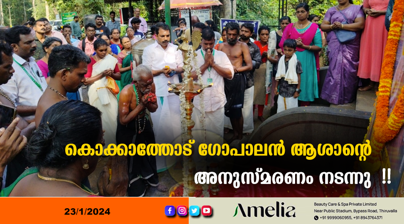 കോന്നി : കുംഭപ്പാട്ടിന്റെ കുലപതിയും ഊരാളി പ്രമുഖനുമായിരുന്ന ആദ്യ കുടിയേറ്റ ഗോത്ര പ്രമുഖനുമായ കൊക്കാത്തോട് ഗോപാലൻ ആശാന്റെ ആറാമത് അനുസ്മരണം ശ്രീ കല്ലേലി ഊരാളി അപ്പൂപ്പൻ കാവിൽ (മൂലസ്ഥാനം ) നടന്നു. ആദി ദ്രാവിഡ നാഗ ഗോത്ര ജനതയുടെ ആചാരവും അനുഷ്ടാനവും കുംഭപ്പാട്ടും തലമുറകളിലേക്ക് കൈമാറുന്നതിൽ മുഖ്യസ്ഥാനം വഹിച്ച മഹത് വ്യക്തിയായിരുന്നു കൊക്കാത്തോട് ഗോപാലൻ ആശാൻ.
