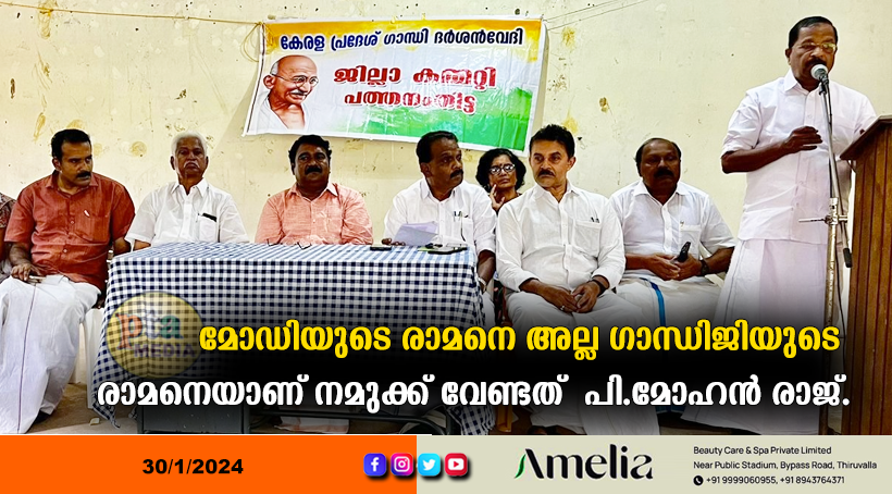 കേരള പ്രദേശ് ഗാന്ധി ദർശൻ വേദിയുടെ ജില്ലാ ഗാന്ധി സ്മൃതി സദസ്സ് പി.മോഹൻ രാജ് ഉദ്ഘാടനം ചെയ്യുന്നു.