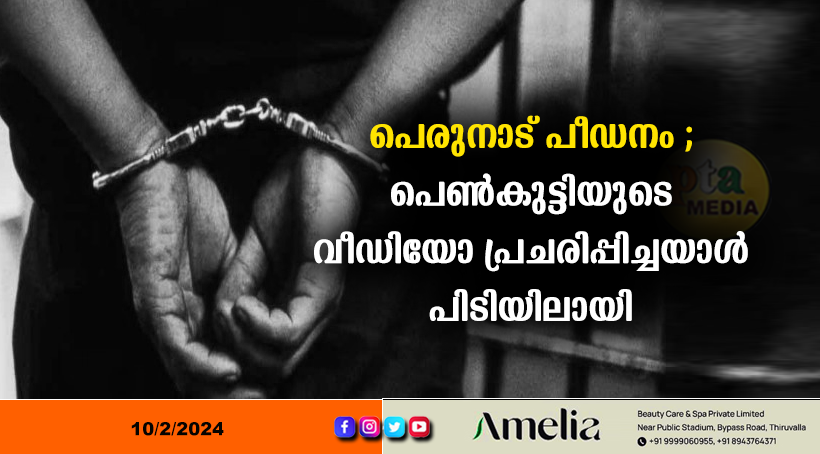 പത്തനംതിട്ട – പെരുനാട്ടിലെ പ്രായപൂർത്തിയാകാത്ത പെൺകുട്ടിയെ പീഡിപ്പിച്ച കേസിൽ ഒരു പ്രതി കൂടി അറസ്റ്റിലായി. ഇടുക്കി കമ്പംമേട് സ്വദേശി ജയപ്രകാശ് (സഞ്ചു) ആണ് അറസ്റ്റിലായത്. ഇയാളാണ് പെൺകുട്ടിയുടെ നഗ്ന വീഡിയോ സാമൂഹ്യ മാധ്യമങ്ങളിൽ പ്രചരിപ്പിച്ചത്.