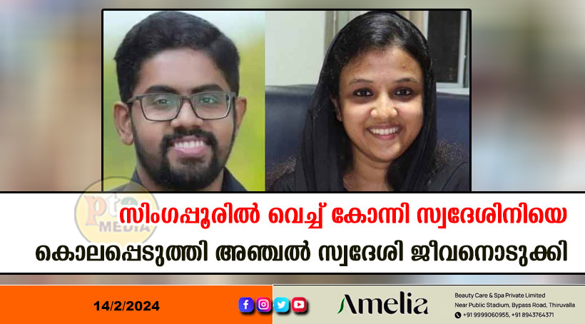സിംഗപ്പൂർ – വിവാഹം ക്ഷണിക്കാനെത്തിയ പെൺസുഹൃത്തിനെ യുവാവ് കൊലപ്പെടുത്തിയ ശേഷം ജീവനൊടുക്കിയെന്ന് റിപ്പോർട്ട്. സ്ഥിരീകരിക്കാൻ മടിച്ച് പെൺകുട്ടിയുടെയും യുവാവിന്റെയും വീട്ടുകാർ. പത്തനംതിട്ട കോന്നി മങ്ങാരം മേപ്രത്ത് പരേതനായ കെ.എൻ.സലീം (ബാബു വലഞ്ചുഴി) മകൾ അമിത സലീം (29) ആണ് കൊല്ലപ്പെട്ടത്. അമിതയെ കൊലപ്പെടുത്തിയ ശേഷം സുഹൃത്തായ കൊല്ലം അഞ്ചൽ ജങ്ഷൻ തേജസിൽ കെ.വി. ജോണിന്റെ മകനും സിംഗപ്പൂർ നാൻയാങ് യൂണിവേഴ്സിറ്റി വിദ്യാർഥിയുമായ ജോജി ജോൺ വർഗീസ് (29) ജീവനൊടുക്കുകയായിരുന്നുവെന്ന് പറയുന്നു. ഇരുവരും ദീർഘകാലമായി അടുത്ത സുഹൃത്തുക്കളാണ്.