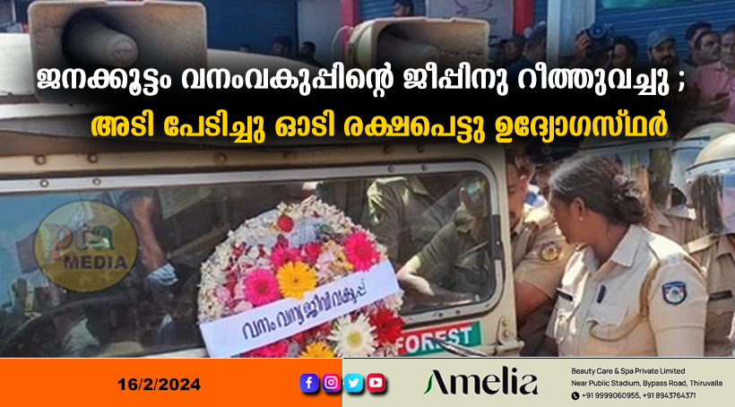 ജനക്കൂട്ടം വനംവകുപ്പിന്റെ ജീപ്പിനു റീത്തുവച്ചു ; അടി പേടിച്ചു ഓടി രക്ഷപെട്ടു ഉദ്യോഗസ്ഥർ